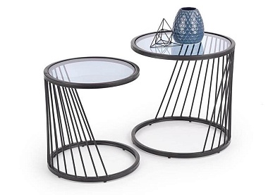 Комплект журнальных столов Atlanta A Серый мрамор, Черный Стекло