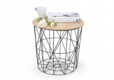 Стол журнальный КЭТ Дуб вотан, Черный МДФ