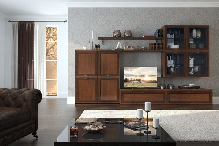 - Отделка фасадов выполнена испанским акриловым лаком и патиной (эффект состаренного дерева);