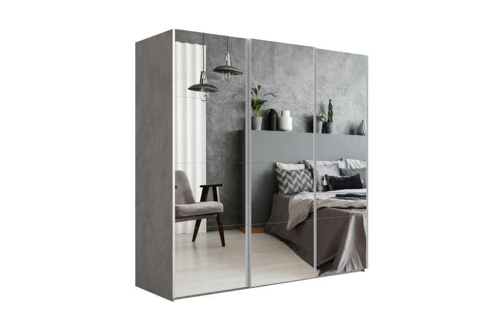 Цена на Шкаф-купе Lux 210x230 см, с зеркальными дверцами, бетон от производителя , оплатите любым удобным для вас способом!