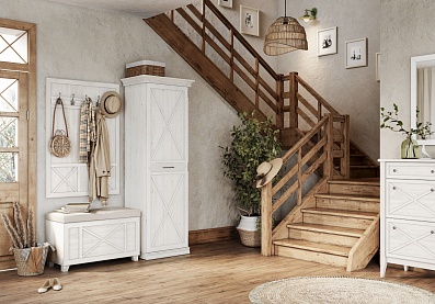 - Мебель Кантри украсит легкий классический интерьер прихожей;