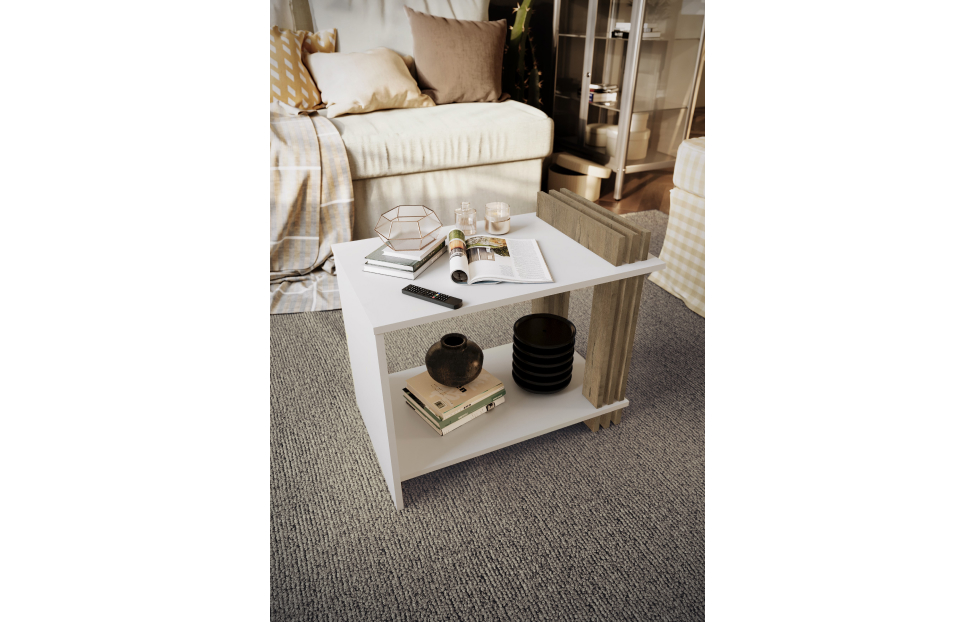 Купить Стол журнальный Троя / Белый, Дуб Бунрати в интернет-магазине мебели «Ангстрем»