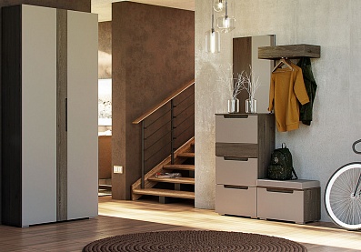 Прочные фасады из МДФ в ПВХ-пленке текстурированы под дерево «швейцарский вяз» и украшены вставкой базового белого цвета. Такое оформление зрительно вытягивает помещение в вертикальном направлении. Все детали облицованы кромочным материалом высокого качества, защищающим древесную плиту от порчи и расслоения. Внутри одностворчатый шкаф укомплектован евроштангой и двумя полками, по запросу покупателя могут быть установлены 4 полочки из ламинированной ДСП. В комплектацию входят крепеж и фурнитура.
