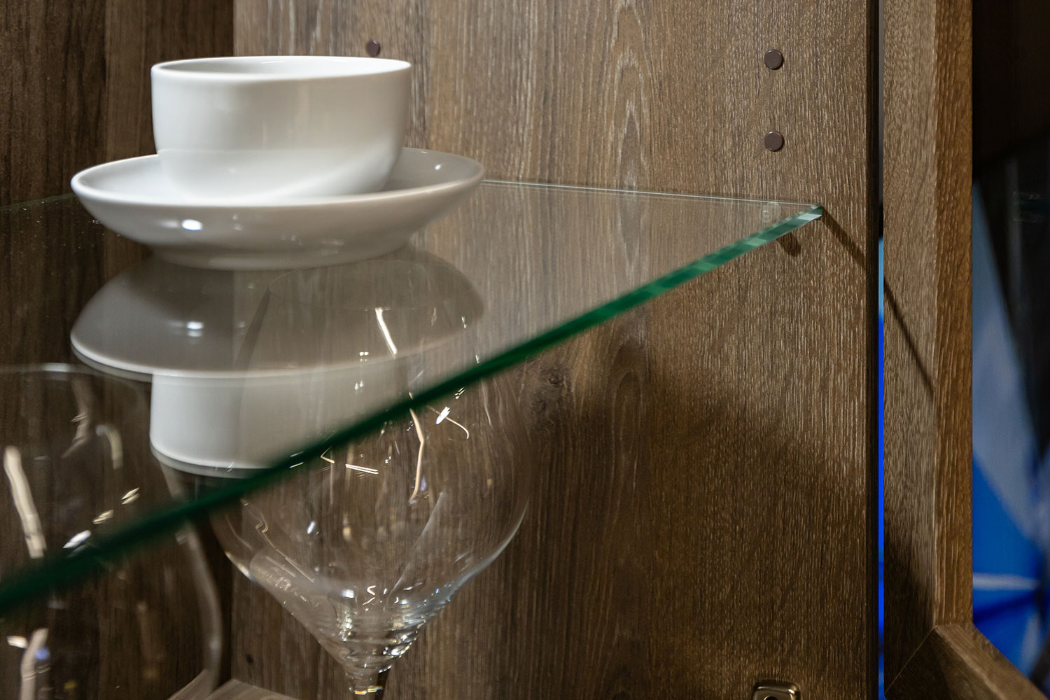 - Шкаф укомплектован одной полкой из ЛДСП и одной полкой из стекла;